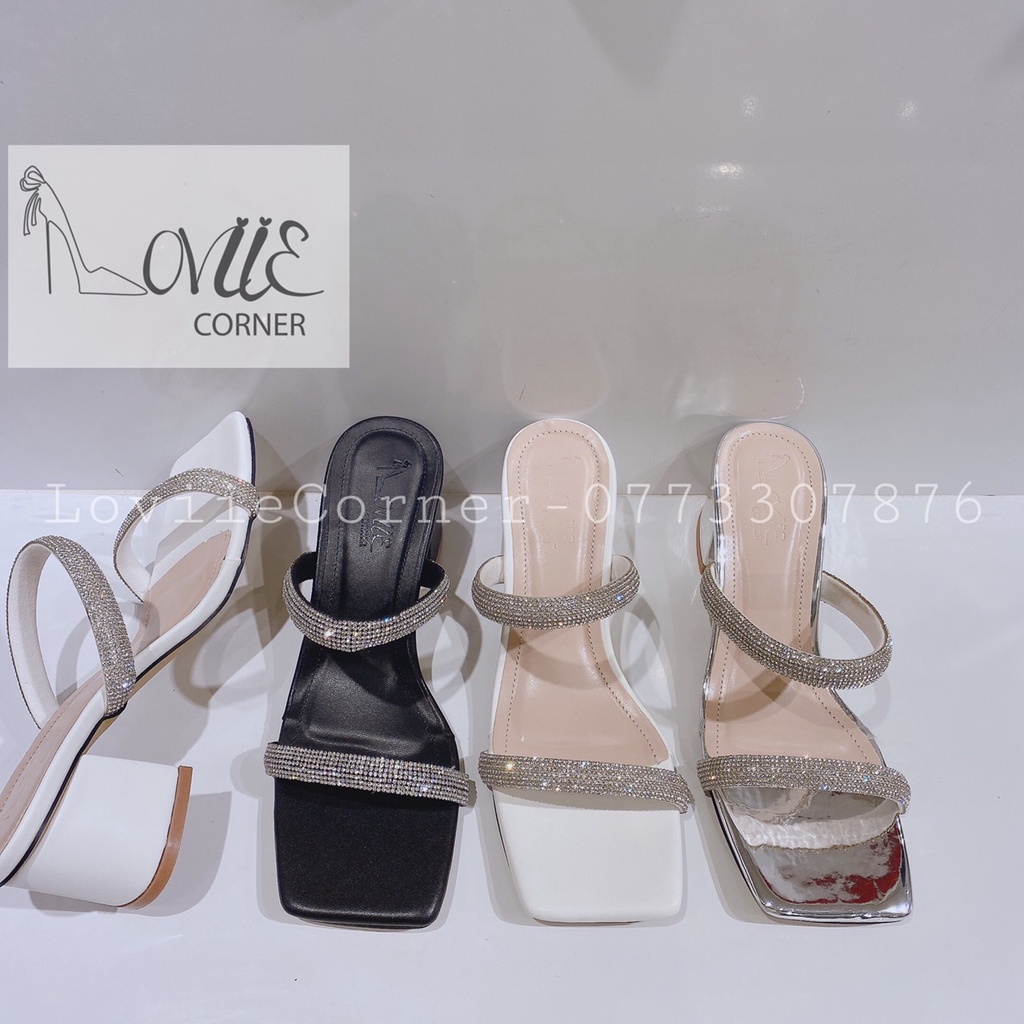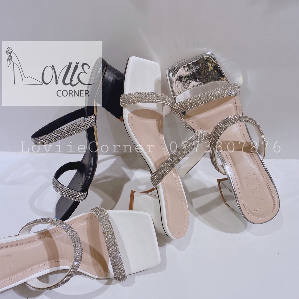 DÉP GUỐC NỮ LOVIIECORNER - DÉP CAO GÓT THỜI TRANG 2 QUAI NGANG ĐÍNH ĐÁ 5CM D211104 free ship